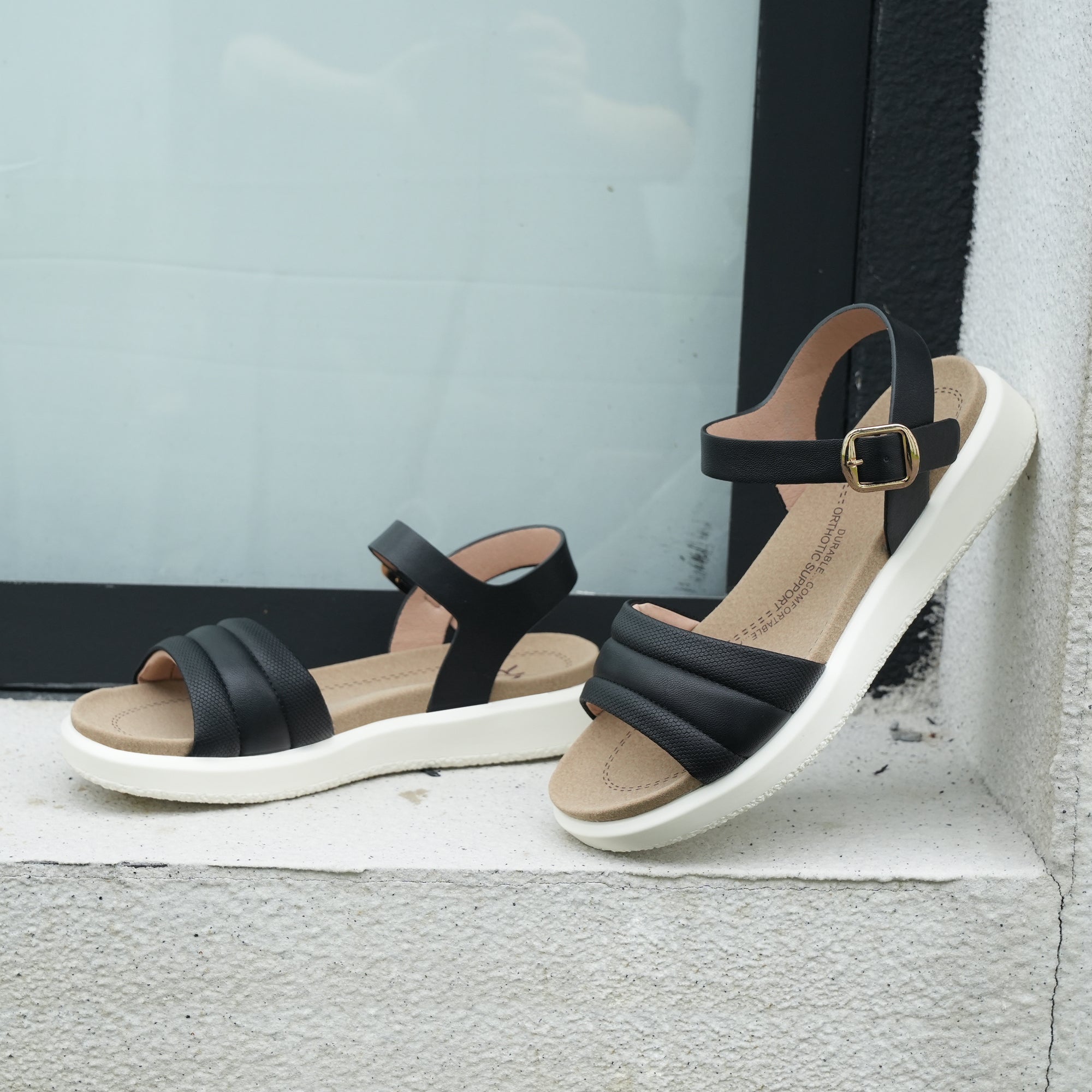 Black Arch Support Sandals-Katie